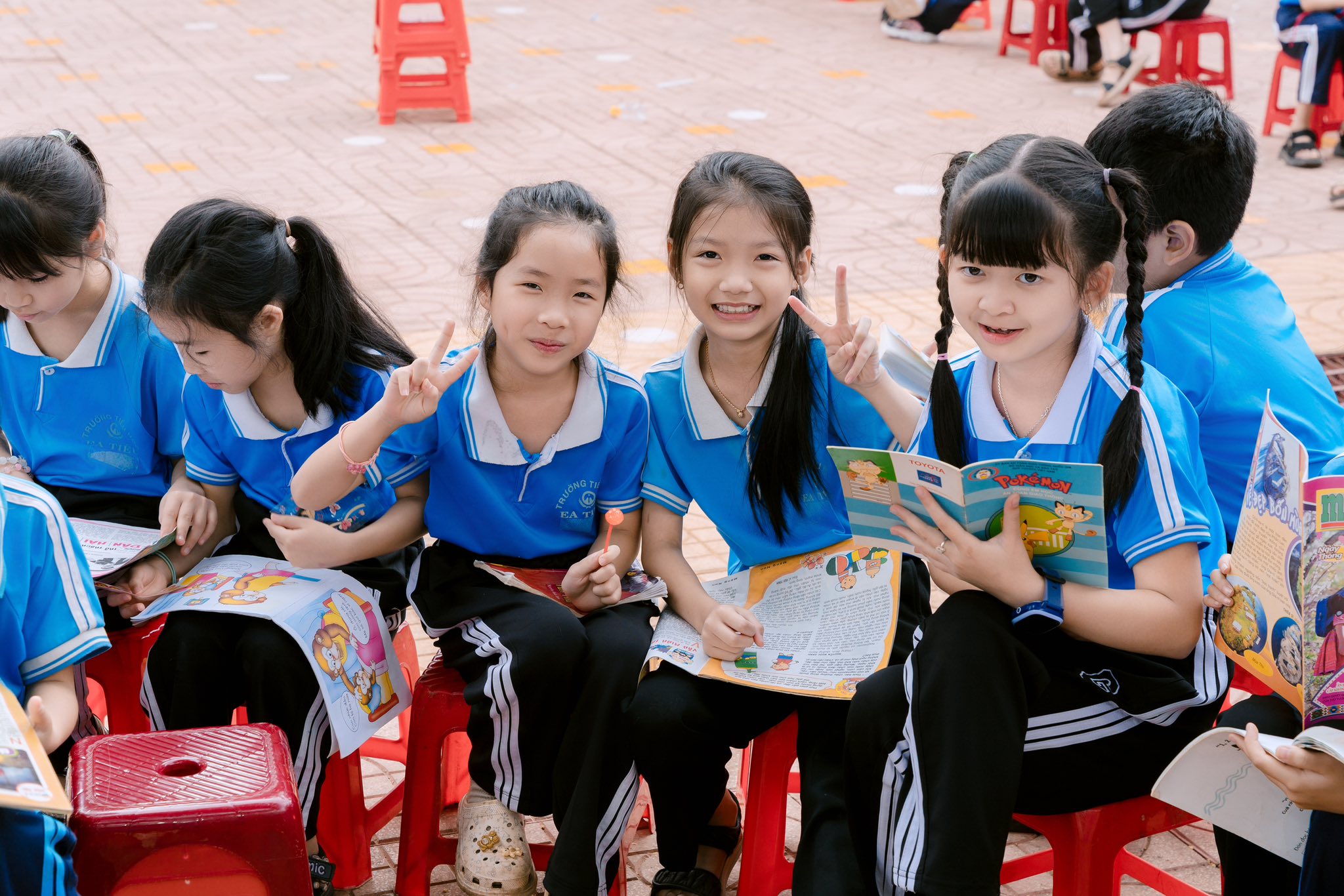 Bên cạnh đó, Ngày hội đọc sách đã mang đến không gian tri thức bổ ích, giúp các em thêm yêu sách, yêu học tập.